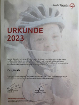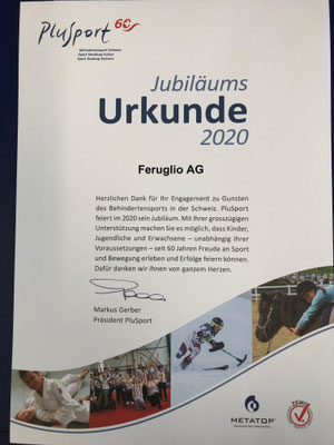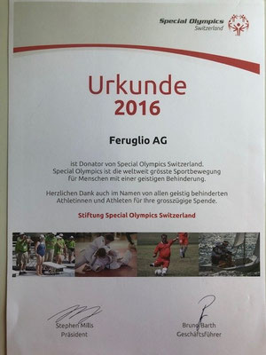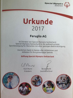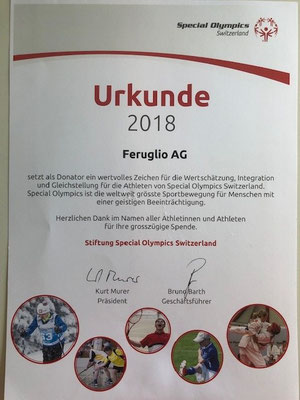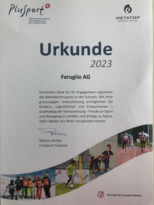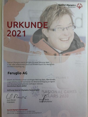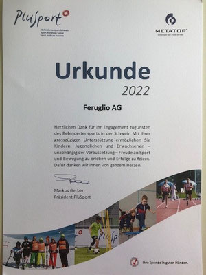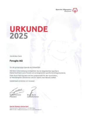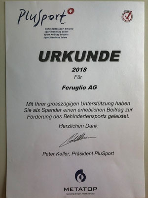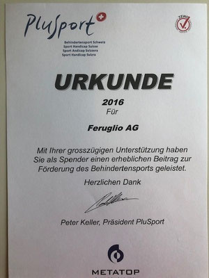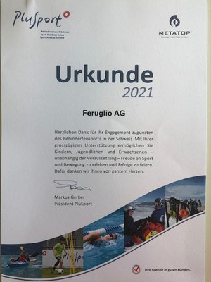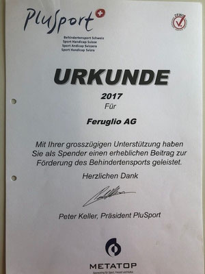 Die Firma Feruglio AG engagiert sich mit einer Spende für den Behindertensport Schweiz.